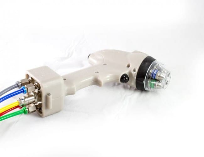 The e-Gun Select is also lighter weight yet made of a tough plastic resin that is chemical proof. It is durable but easy on the arm.