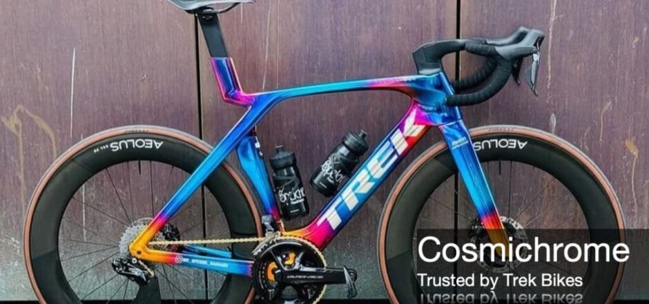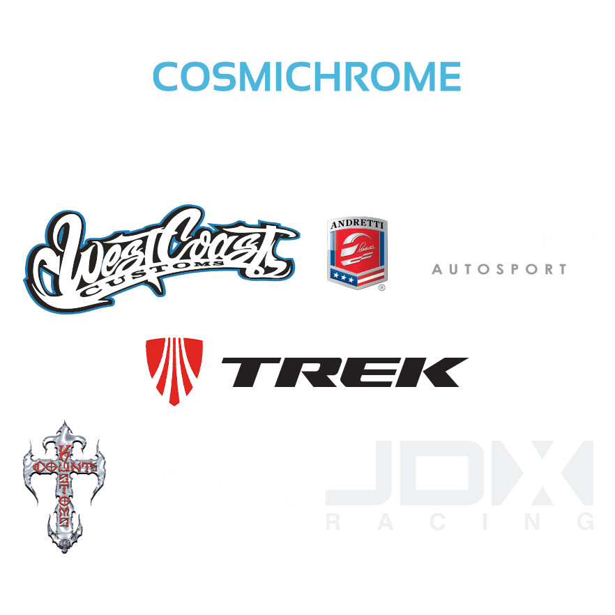 Understandably, our customers apply Cosmichrome for companies like Trek Bikes, Cirque de Soleil, Lady Gaga, Disney, The National Football League, American Idol, Sennheiser, and Beats, to name a few. It’s also used by West Coast Customs. Counting Cars, Off Axis Paint, and even Ford and General Motors.